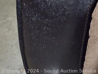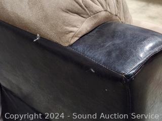 317 Lot including Brown Microfiber Vinyl Reclining Sofa's, King & Queen Beds, Woodchipper, Lawn Mower, Massage/Heat Power Recliner, Live Edge Shelf/Console, Hutch, Dining Table, Drexel Serpentine Dresser, Assorted Tools (Power Tools, Hand Tools, Bits, Hardware, etc), Tool Chest, TV's, Ornate Carved Camphor Wood Chest, Electronics, Pop-Up Canopy, Assorted Kitchen Cookware, Household Goods, Home Decor, Artwork, Rugs & More!!!