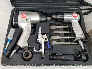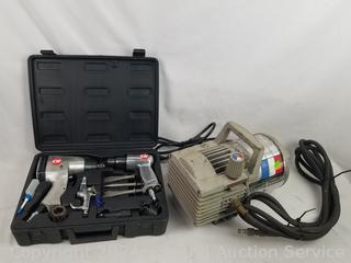 Lot #0113: Campbell Hausfeld Air Compressor, Air Hammer w/Bits, 1/2" Impact Wrench