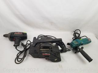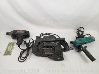 317 Lot including Brown Microfiber Vinyl Reclining Sofa's, King & Queen Beds, Woodchipper, Lawn Mower, Massage/Heat Power Recliner, Live Edge Shelf/Console, Hutch, Dining Table, Drexel Serpentine Dresser, Assorted Tools (Power Tools, Hand Tools, Bits, Hardware, etc), Tool Chest, TV's, Ornate Carved Camphor Wood Chest, Electronics, Pop-Up Canopy, Assorted Kitchen Cookware, Household Goods, Home Decor, Artwork, Rugs & More!!!
