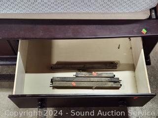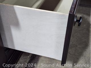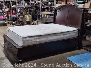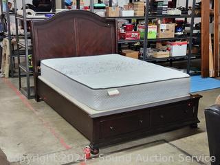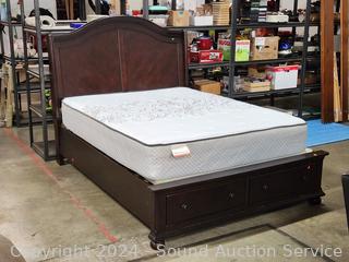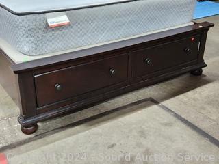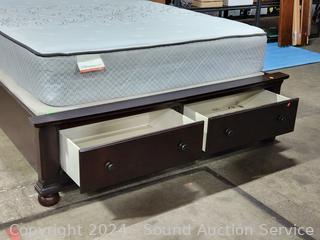 Lot #0004: Dark Finish Queen Platform Bed w/2 Drawers & Mattress