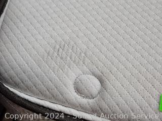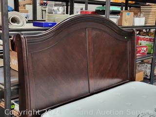 18" to 6" H headboard & footboard, 64" W x 79.5" long rails. Some minor scuffs, scratches. Appears complete with hardware. Sealy mattress, don't see any issues.