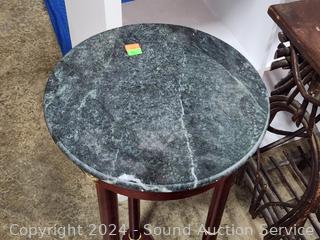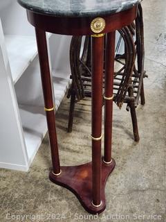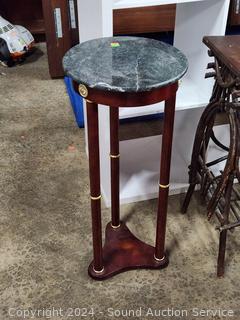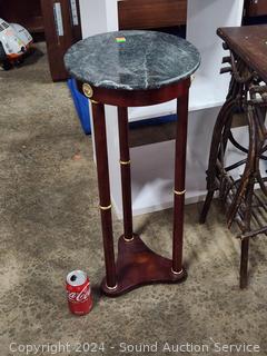 Lot #0040: Marble Top Cherry Finish Accent Table/Plantstand