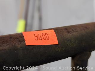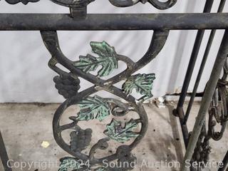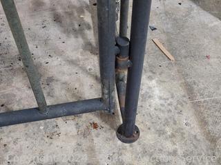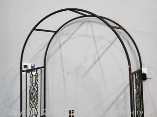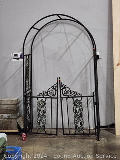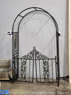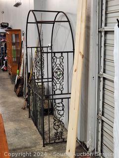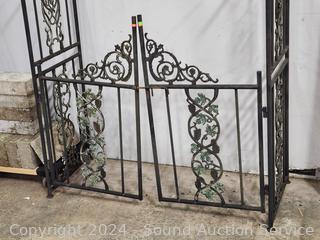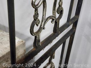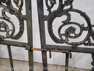 Various weathering, wear to finish. 86" H x 50" W x 21.5" D. Missing cap on one the gate rods.