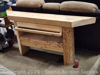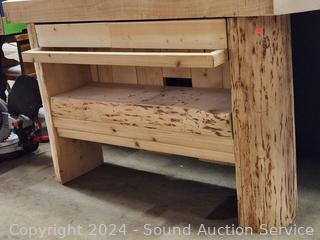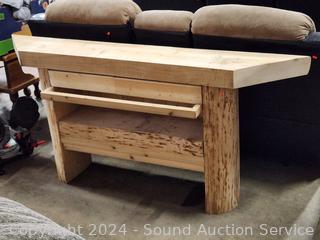 317 Lot including Brown Microfiber Vinyl Reclining Sofa's, King & Queen Beds, Woodchipper, Lawn Mower, Massage/Heat Power Recliner, Live Edge Shelf/Console, Hutch, Dining Table, Drexel Serpentine Dresser, Assorted Tools (Power Tools, Hand Tools, Bits, Hardware, etc), Tool Chest, TV's, Ornate Carved Camphor Wood Chest, Electronics, Pop-Up Canopy, Assorted Kitchen Cookware, Household Goods, Home Decor, Artwork, Rugs & More!!!