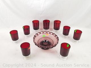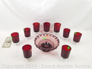 Lot #0075: Purple Glass Compote & 9 Goblets