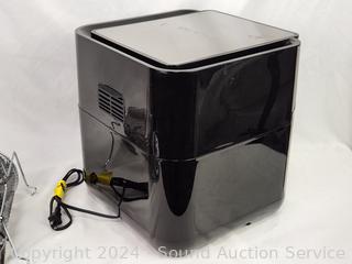 317 Lot including Brown Microfiber Vinyl Reclining Sofa's, King & Queen Beds, Woodchipper, Lawn Mower, Massage/Heat Power Recliner, Live Edge Shelf/Console, Hutch, Dining Table, Drexel Serpentine Dresser, Assorted Tools (Power Tools, Hand Tools, Bits, Hardware, etc), Tool Chest, TV's, Ornate Carved Camphor Wood Chest, Electronics, Pop-Up Canopy, Assorted Kitchen Cookware, Household Goods, Home Decor, Artwork, Rugs & More!!!