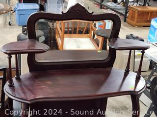 317 Lot including Brown Microfiber Vinyl Reclining Sofa's, King & Queen Beds, Woodchipper, Lawn Mower, Massage/Heat Power Recliner, Live Edge Shelf/Console, Hutch, Dining Table, Drexel Serpentine Dresser, Assorted Tools (Power Tools, Hand Tools, Bits, Hardware, etc), Tool Chest, TV's, Ornate Carved Camphor Wood Chest, Electronics, Pop-Up Canopy, Assorted Kitchen Cookware, Household Goods, Home Decor, Artwork, Rugs & More!!!