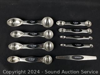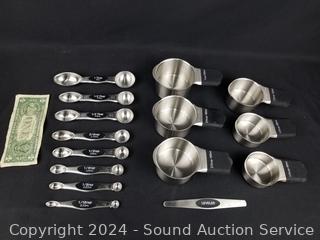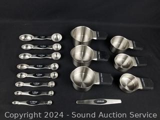 Lot #0189: 15pc Stainless Measuring Cups, Spoons & Leveler