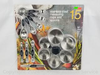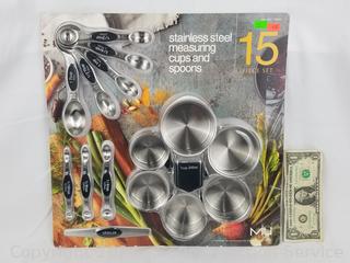 Lot #0237: 15pc Stainless Steel Measuring Cups/Spoons & Leveler
