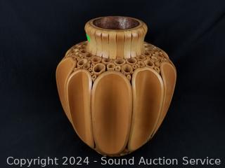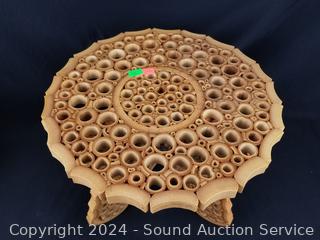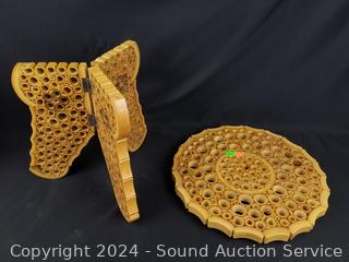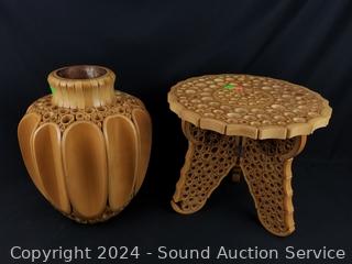 Lot #0155: 2pc Unique Sliced Bamboo Vase & Collapsible Table