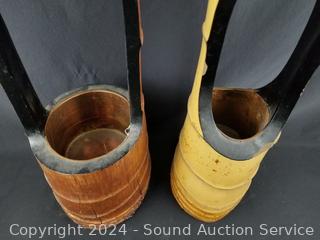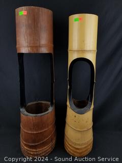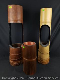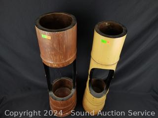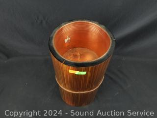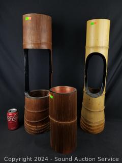 Lot #0122: 3 Bamboo Copper Lined Planter Pots/Stands
