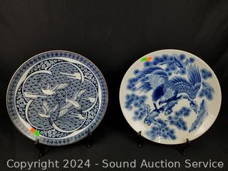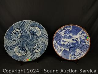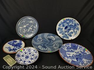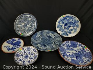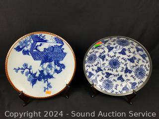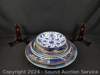 Lot #0042: 6pc Asian/Oriental Blue/White Porcelain China w/2 Stands