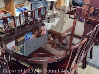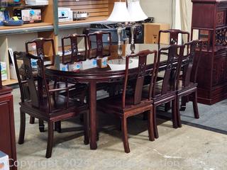 Lot #0002: Beautiful Oriental Rosewood Dining Table w/8 Chairs