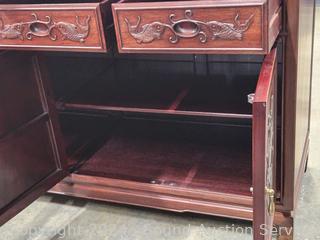 300 Lots including Beautiful Oriental Rosewood Furniture, Ashley Furn. Silver Bedroom Set, Collectible US Silver Coins/Bullions, Intricately Carved Chest, Table Set, Genuine Leopard Fur Coat, Mink Shawl/Coat, Asian/Oriental Decor, Noritake China, Etched Lamps, Etched Planter Pots/Vase, Carved Wood Dragons, Kimono Accessories/Sandals, Assorted Household Goods, Kitchen Cookware & More!!!