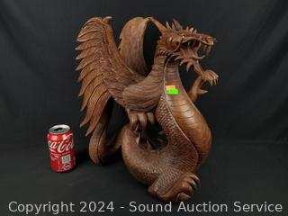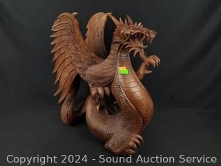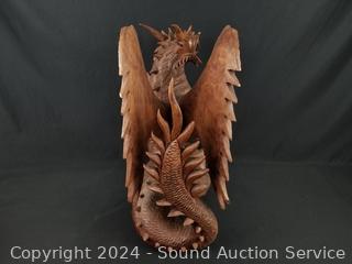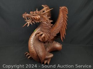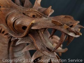 Lot #0138: Intricately Hand Carved Wood Dragon Sculpture