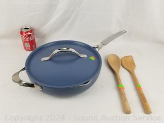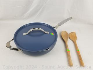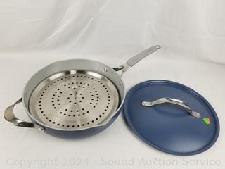 Lot #0199: Tramontina 5qt Non-Stick Skillet w/2 Wood Utensils & Steamer Insert