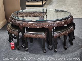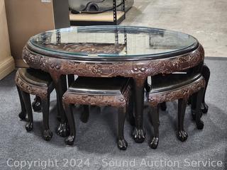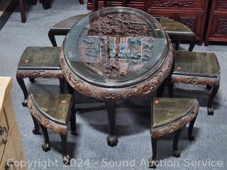 Lot #0026: Vintage Intricately Carved Oriental Table w/6 Chairs