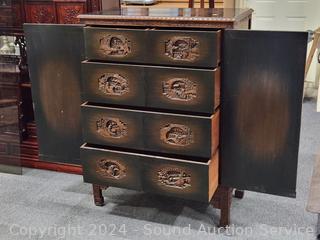 300 Lots including Beautiful Oriental Rosewood Furniture, Ashley Furn. Silver Bedroom Set, Collectible US Silver Coins/Bullions, Intricately Carved Chest, Table Set, Genuine Leopard Fur Coat, Mink Shawl/Coat, Asian/Oriental Decor, Noritake China, Etched Lamps, Etched Planter Pots/Vase, Carved Wood Dragons, Kimono Accessories/Sandals, Assorted Household Goods, Kitchen Cookware & More!!!