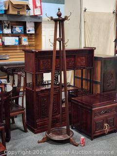 300 Lots including Beautiful Oriental Rosewood Furniture, Ashley Furn. Silver Bedroom Set, Collectible US Silver Coins/Bullions, Intricately Carved Chest, Table Set, Genuine Leopard Fur Coat, Mink Shawl/Coat, Asian/Oriental Decor, Noritake China, Etched Lamps, Etched Planter Pots/Vase, Carved Wood Dragons, Kimono Accessories/Sandals, Assorted Household Goods, Kitchen Cookware & More!!!