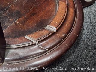 One foot is broken & needs repair, some scuffs, scratches in finish. Overall 78" H x 18" Dia @ base (not including feet).