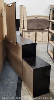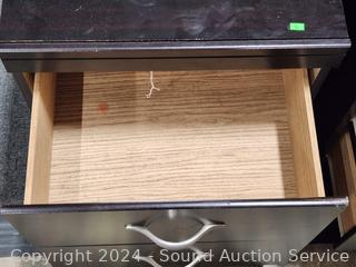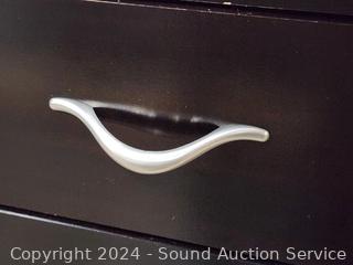 Some scuffs, wear to finish on edges. 36.5" H x 53.75" W x 15.5" D with 36" H x 30" W dresser, 24.5" H x 20" W x 15.5" D nightstand.