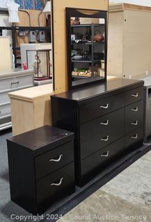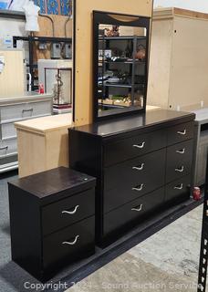 Lot #0013: Wood Grain Finish 8-Drawer Dresser & 2-Drawer Nightstand