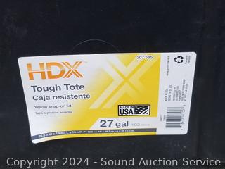 Lot #0128: 2 HDX 27 Gallon Tough Totes w/Lids