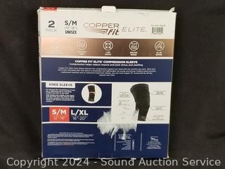 Lot #0226: 2pk Copper Fit Elite Compression Knee Sleeves S:S/M,12"-16"