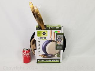 Lot #0182: 3 Green Pan Jewel Ceramic Non-Stick Fry Pans