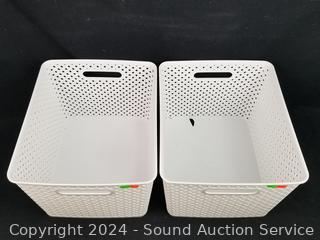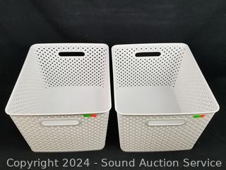 Lot #0173: 4 Basket Weave Plastic Organizers