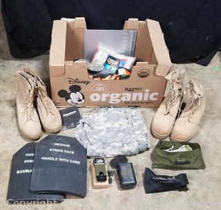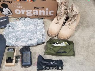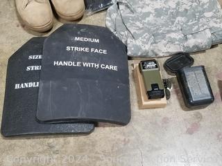 Waterproof bag, boots S:10R, Ballistic Plates, T-shirt, clip board & more. Refer to photos for more details.