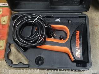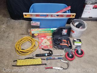 Dado, levels, 5" casters, 8" utility tiers, air grease gun, wrench, electric stapler & more. Refer to photos for more details.