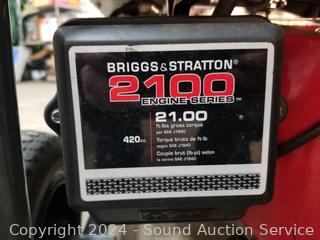 Comes with manual, service receipt, keys. Starts, runs. Tested using electric start. No hardware for battery terminal, service order states battery is not holding charger. 28" H x 28" x 21".