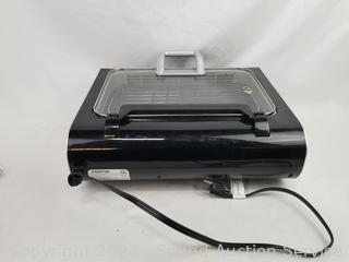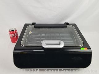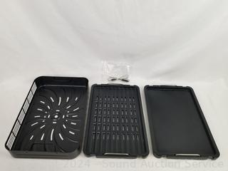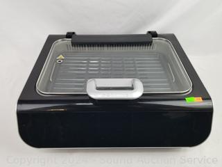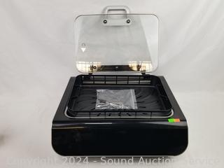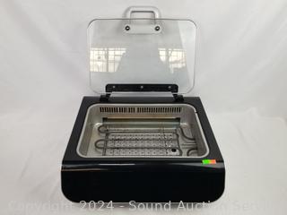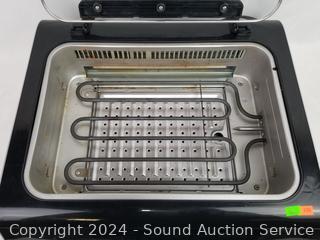 Appears to be functioning as intended. Light wear from use. Comes with 2 tray inserts. 5.75" x 17.25" x 16.25".