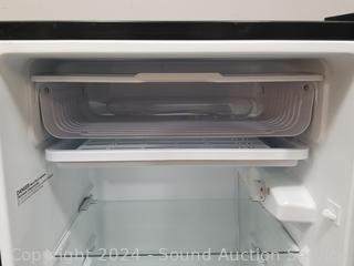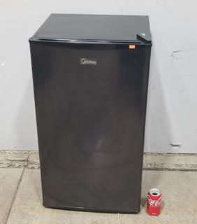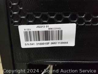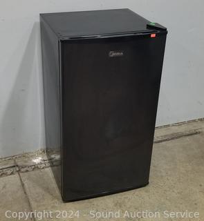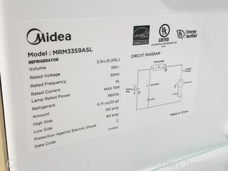 A couple small dents on the top. Appears to be functioning as intended. 33" H x 18.5" W x 17.5" D.