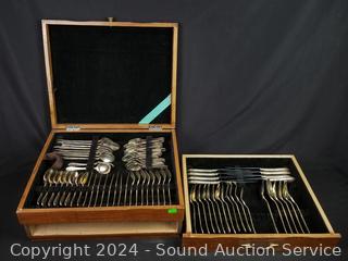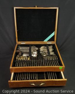 Lot #0043: Nickel Silver Flatware Set w/Chest