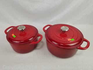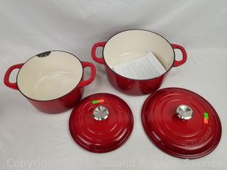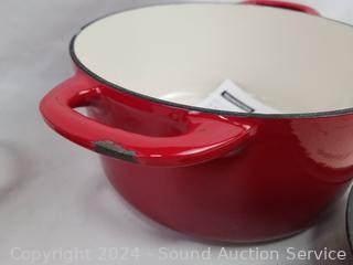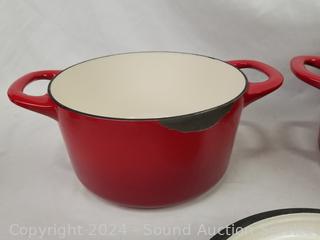 Lot #0185: Red Tramontina Cast Iron Enamel Dutch Ovens