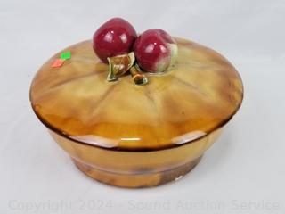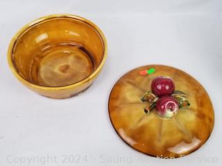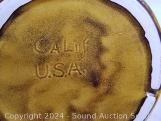 Covered dish is marked "Calif. Pottery", small chip on lid, others are unmarked.