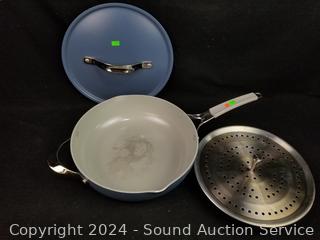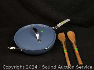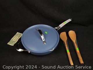 Lot #0188: Tramontina 12" Frypan w/2 Wood Spoons & Steamer Insert
