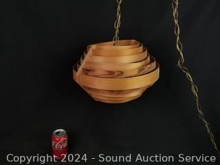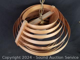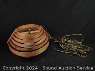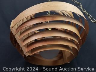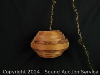Lot #0063: Wood Banded Shade Hanging Swag Lamp