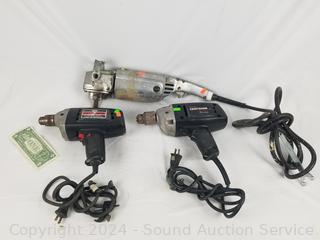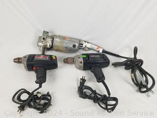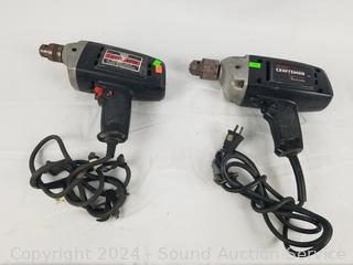 Lot #0076: 2 Craftsman 3/8" & 1/2" Heavy Duty Drills & Pet 7" Angle Grinder