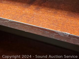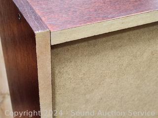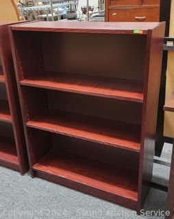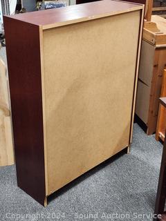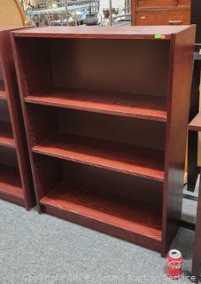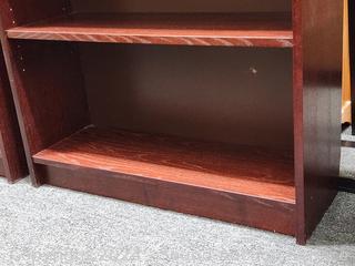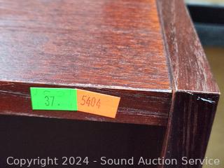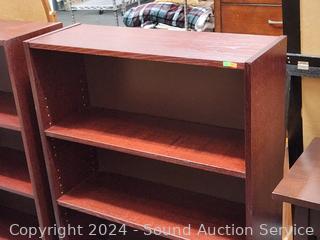 Lot #0037: 2 Shelf Red Stained Veneer Bookshelf