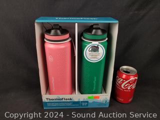 Lot #0189: 2 ThermoFlask 24oz Vacuum Insulated Steel Travel Bottles