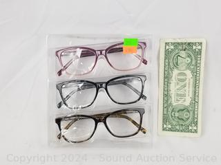 Lot #0227: 3 Pairs Foster Grant Fashion +3.0 Reading Glasses