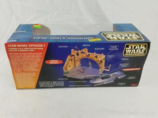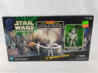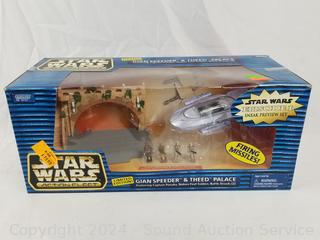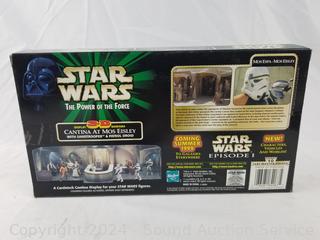 All sealed in original packaging. 3 2005 Revenge of the Sith, 1998 Hasbro Cantina at Mos Eisley, 1998 Gian Speeder & Theed Palace. All sealed in original packaging.