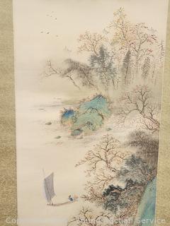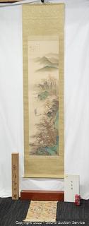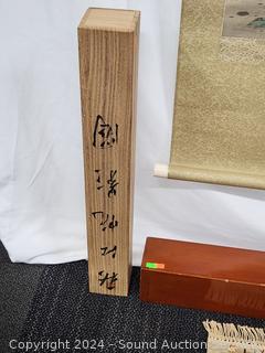 Lot #0090: Asian Silk Tapestry/Table Mat & Original Scroll Artwork
