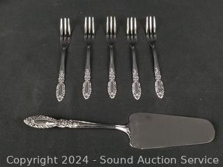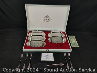 Lot #0088: Coulee Vaissell Silver Plate Cake Plates, Forks & Server Set w/Case
