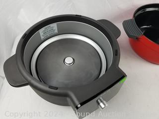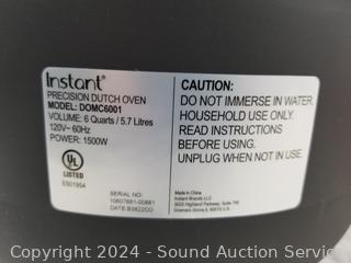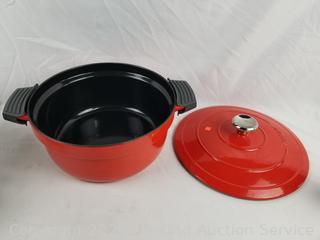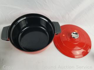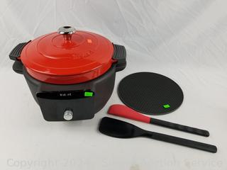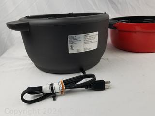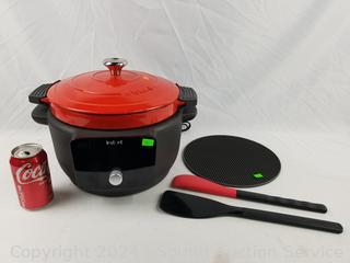 Lot #0304: Instant Cast Iron Enamel Crock Pot w/Utensils