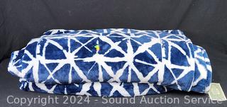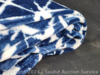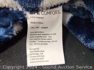 Lot #0266: Life Comfort Blue/White Plush 10ft Family Blanket