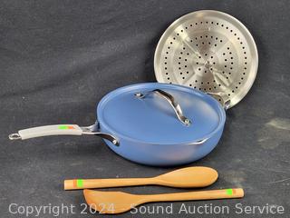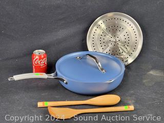 Lot #0237: Tramontina 12" Non-Stick Frypan w/Lid, Steamer Insert & 2 Wood Spoons